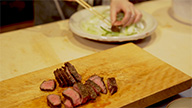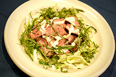 「牛たたきときゅうり、たまねぎの冷製」はスタミナ満点な一品です。