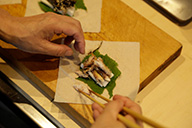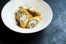「秋刀魚のほぐし身とエゴマと長芋の春巻き」は秋刀魚のほぐし身を使うことで食べやすくなっています。
