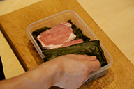 「豚ロースの昆布締め蒸し」はできる限り余分な油を落とすことでヘルシーな一品に。