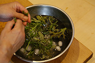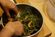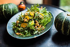「サラダかぼちゃとマスタードリーフとナッツのサラダ」今度はかぼちゃをスッキリヘルシーなサラダにしました。