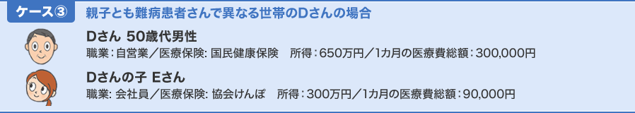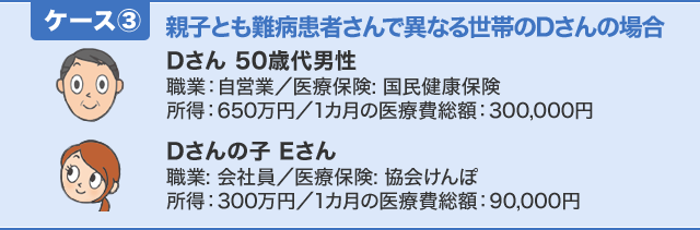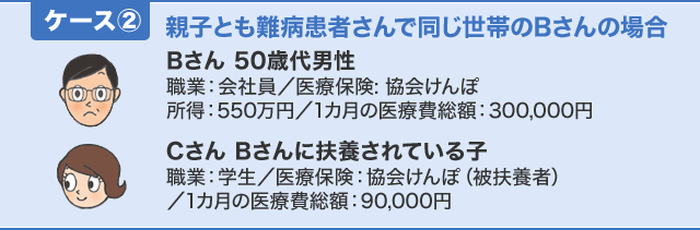 - ●難病の医療費助成制度では、同じ医療保険に加入している人を「世帯」とします。