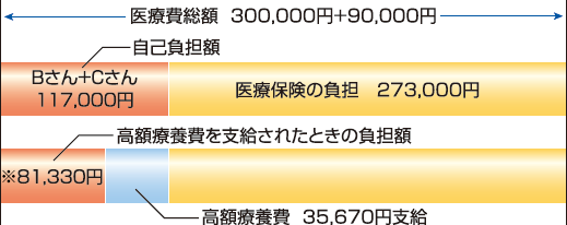 同じ医療保険に加入している世帯全員分の所得(市町村民税額)で自己負担限度額が決まります。